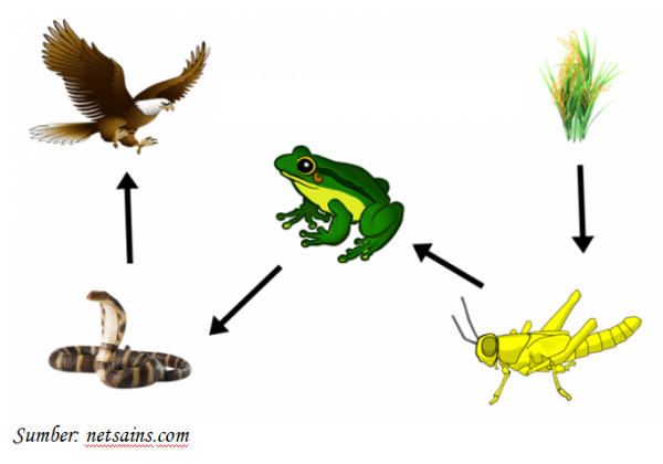 Laba-laba bukan pilihan yang tepat karena termasuk karnivora, sedangkan ayam dan tikus merupakan hewan omnivora (memungkinkan makan padi) namun tidak dapat dimakan oleh katak. Sehingga jawaban yang paling tepat yaitu belalang.
