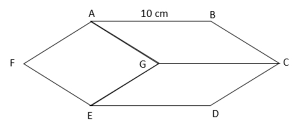 Karena bangun ABCDEF merupakan gabungan dari belah ketupat AGEF, jajar genjang ABCG, dan jajar genjang GCDE, maka luas bangun ABCDEF adalah