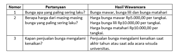 Berdasarkan tabel hasil wawancara di atas, pekerjaan narasumber adalah ....