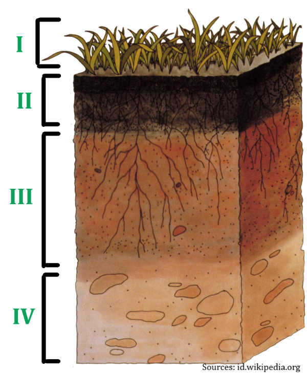 Komponen tanah berupa batuan dan udara utamanya akan ditemukan pada lapisan tanah masing-masing pada nomor ….