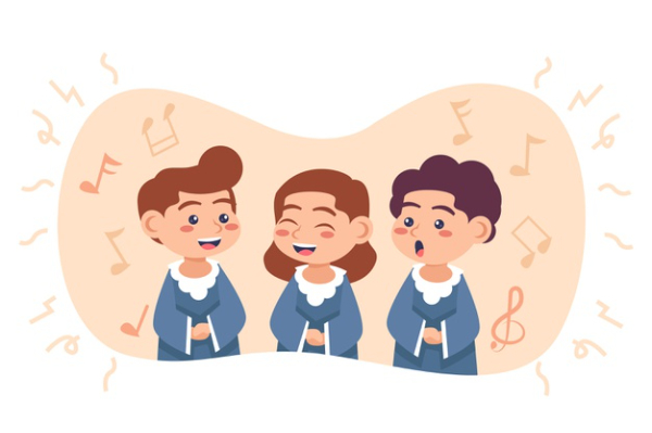 Wina: Halo, selamat datang di grup vokal ini. Namaku Wina dan ini temanku. Namanya Edo.
