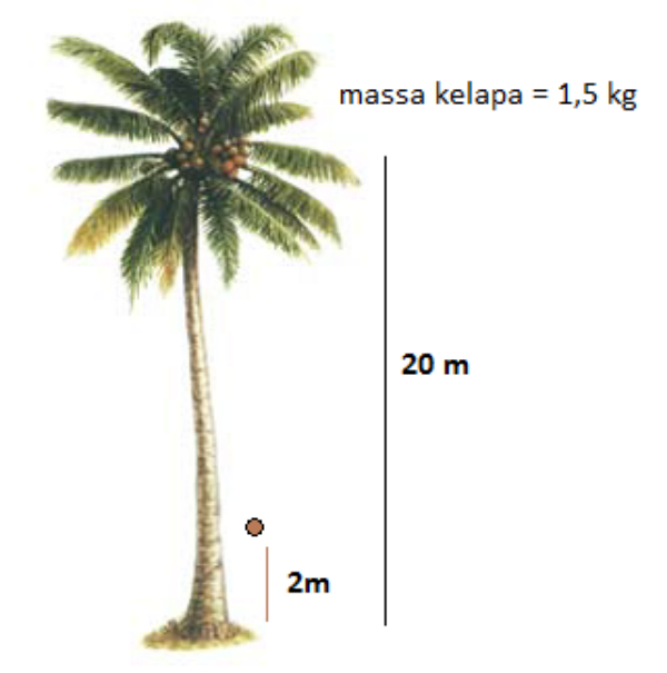 Besarnya energi kinetik kelapa pada ketinggian 2 m dari tanah adalah ….