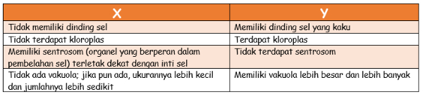 X→Sel Tumbuhan ; Y→Sel Hewan