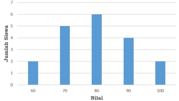 Diagram batang di bawah ini menunjukkan nilai ulangan geografi yang diperoleh sekelompok siswa.