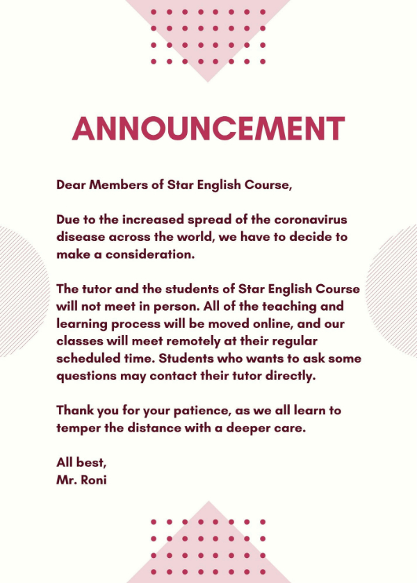 “Our classes will meet remotely at their regular scheduled time”. Remotely means ....