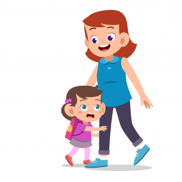 Winda: Iya, Bu. Hari ini adalah hari pertama masuk sekolah. Jadi, Winda belum berani berangkat sendiri.