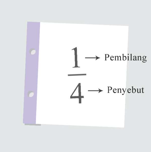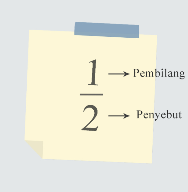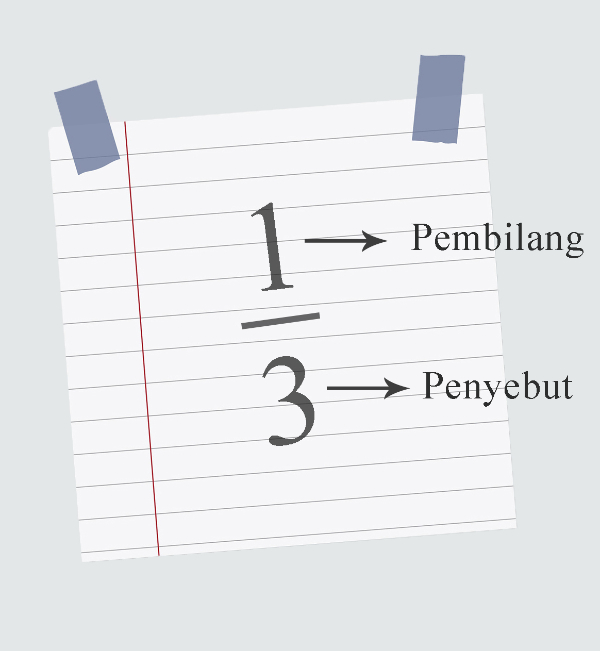 Bilangan pecahan terdiri dari pembilang dan penyebut.