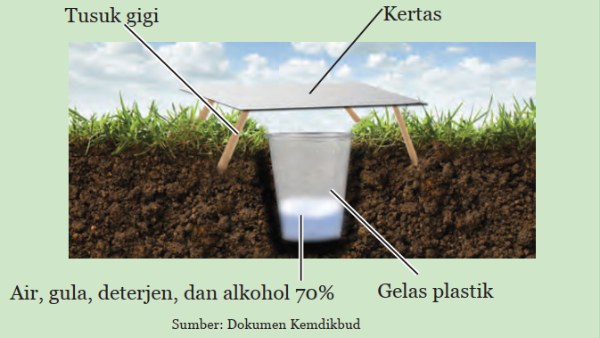 Gula memancing serangga dan alkohol mengawetkan serangga.