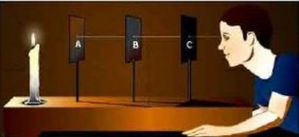 cahaya dapat merambat lurus melalui lubang A, B, dan C