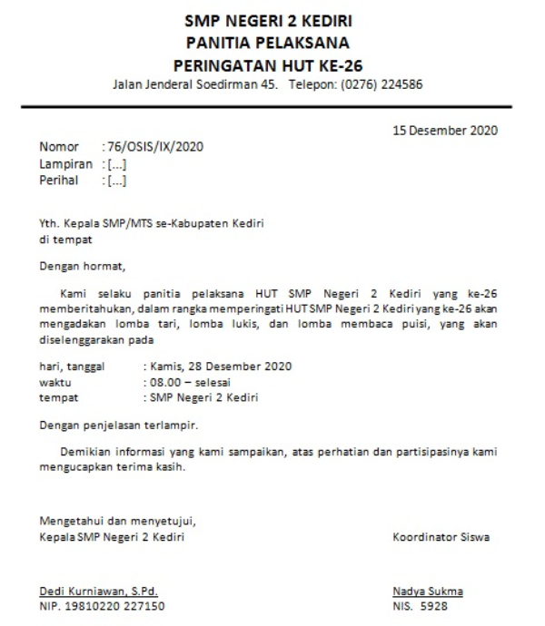 Baris yang rumpang pada bagian perihal surat di atas, seharusnya diisi dengan ....